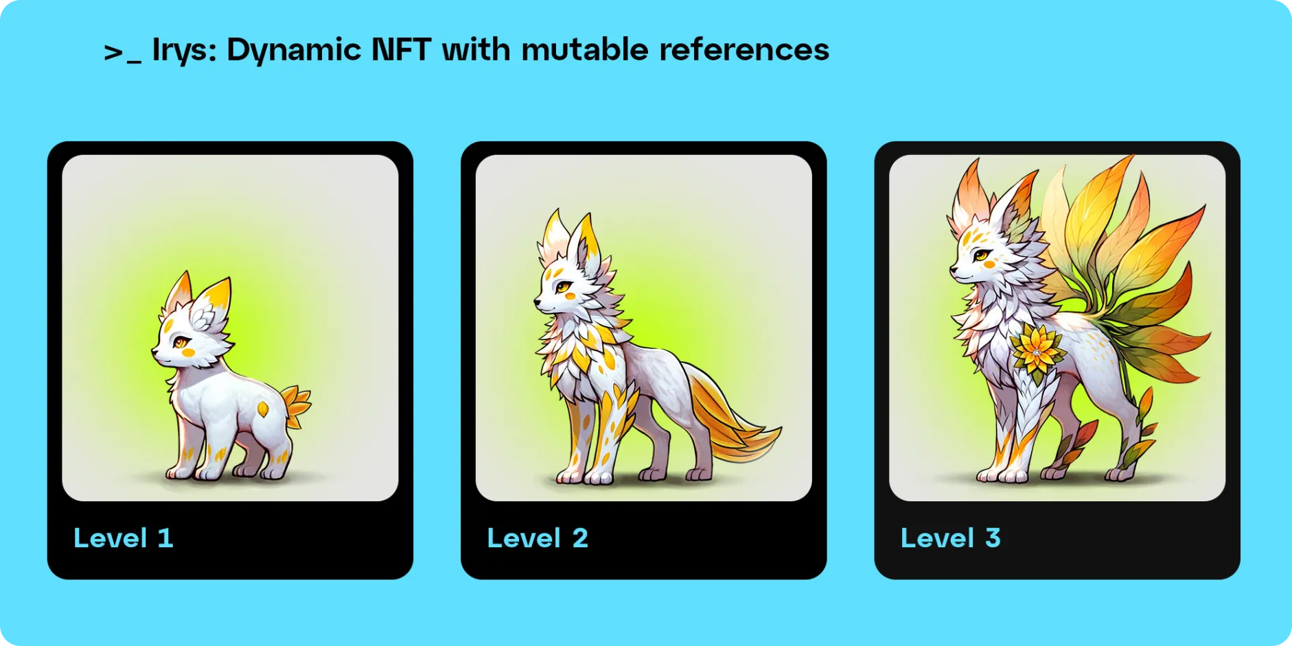 In this guide, you will create a dynamic NFT using Irys's mutability features. Dynamic NFTs are NFTs whose metadata evolves over time. They are commonly used in: